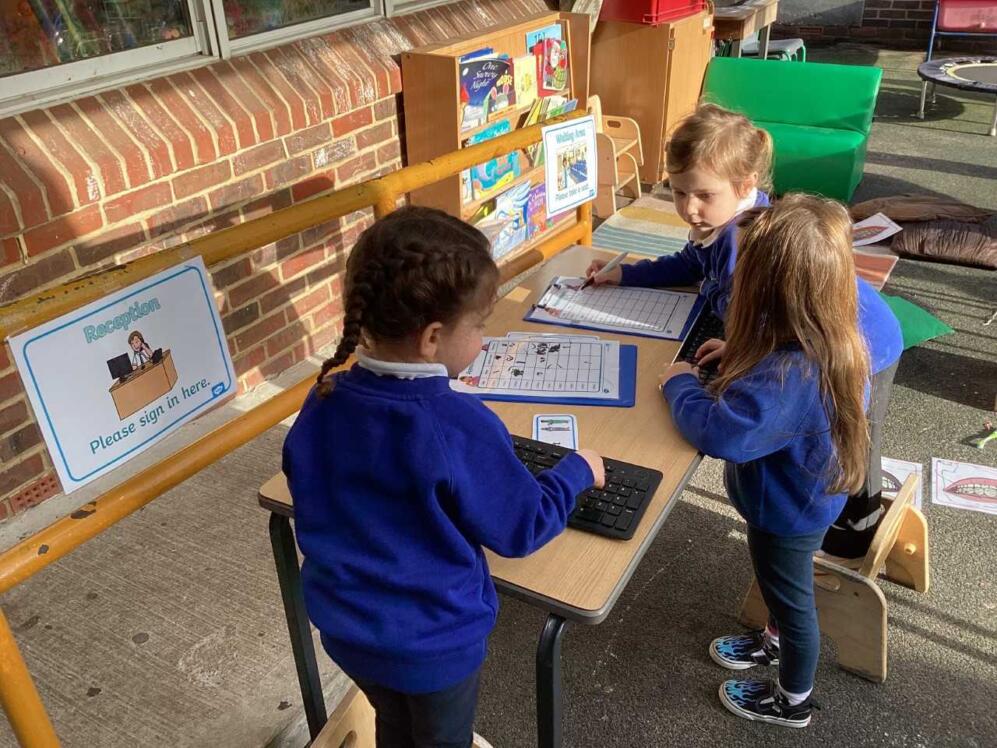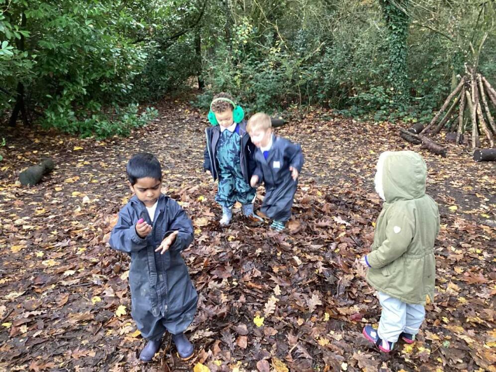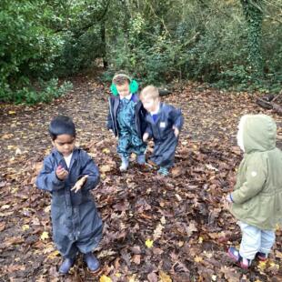 On Wednesday, we had our first forest school session! The children were very excited and had great fun exploring the area. Together, we came up with some rules to keep us safe and then the children went off climbing trees, making leaf trampolines and mud pies – Miss Goodey’s favourite!