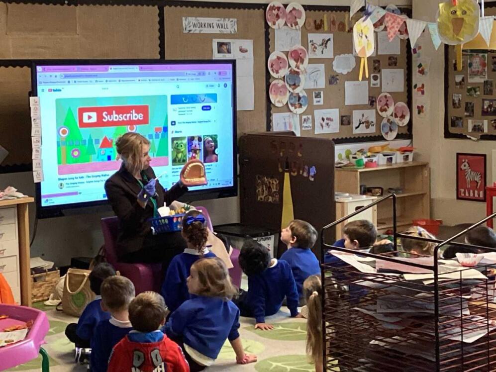 On Tuesday, we had a visit from the Dentist. With the help of her crocodile mascot Dinky, she told us all about the importance of brushing our teeth 2 times a day; fronts, backs, tops and bottoms. She spoke to us about what foods are good and bad for our teeth. The children were very good at saying what food was good or bad in her quiz.