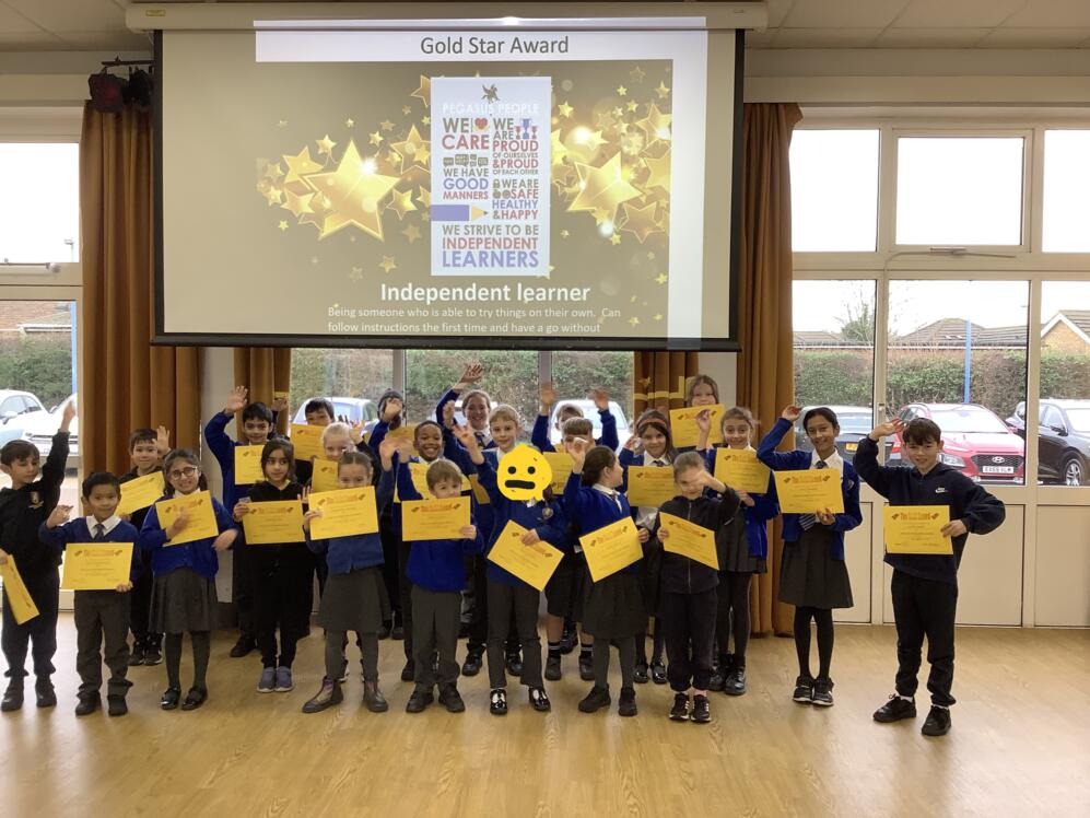 In our Gold Award Assembly this week, we celebrated children who are showing or developing the trait of being an ‘Independent Learner’. We heard about children who are always ready to learn, really good at knowing what they need to do and are able to solve a problem without always asking for adult help. Well done to all those children who got an award.