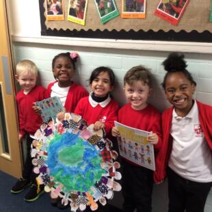 In Reception, they made a lovely display of themselves and their friends and showed us all that we need our friends for the world to be a happy place.
