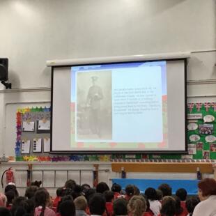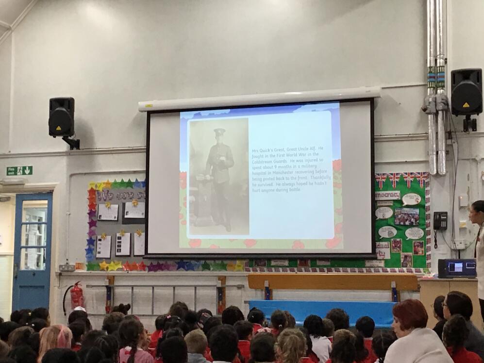 Mrs Quick and Mr Smith both spoke about family members that were soldiers during the First World War. They kindly showed us a collection of photographs i.e. soldiers in training, medals and memorial statues. They were lovely to see and it was fascinating to learn more about their family members.