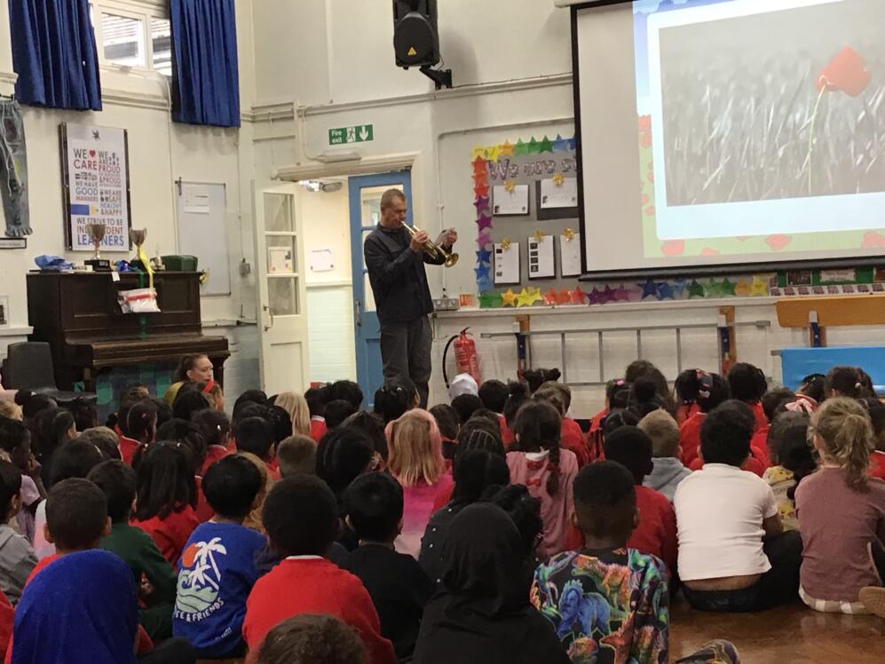 Mr Smith played The Last Post beautifully during our assembly. The Last Post” is a military bugle call that traditionally signalled the end of the day but is now most famously used in remembrance ceremonies to symbolise the completion of a soldier’s duty and their rest. It is played on Remembrance Day, to honour those who have died in war. The mournful melody has become a poignant sound of farewell and remembrance for fallen soldiers.
