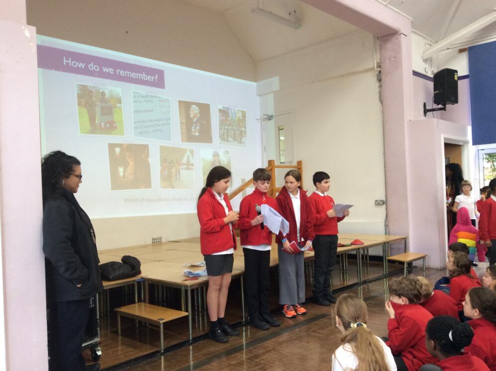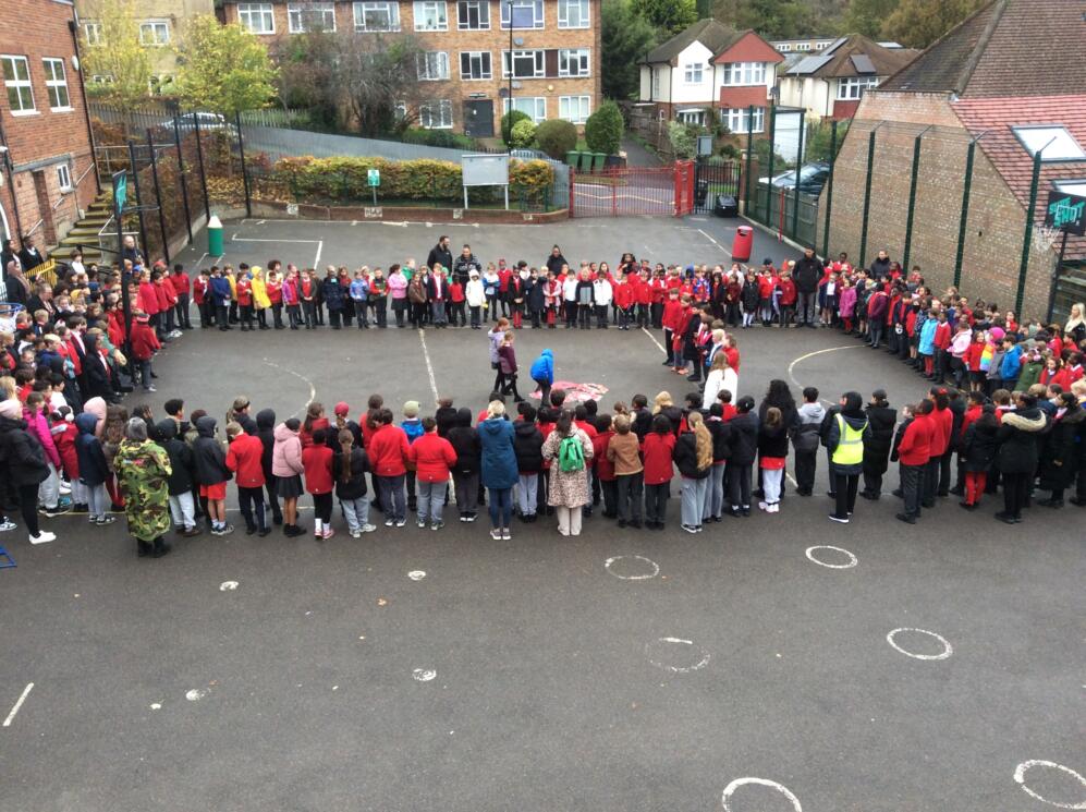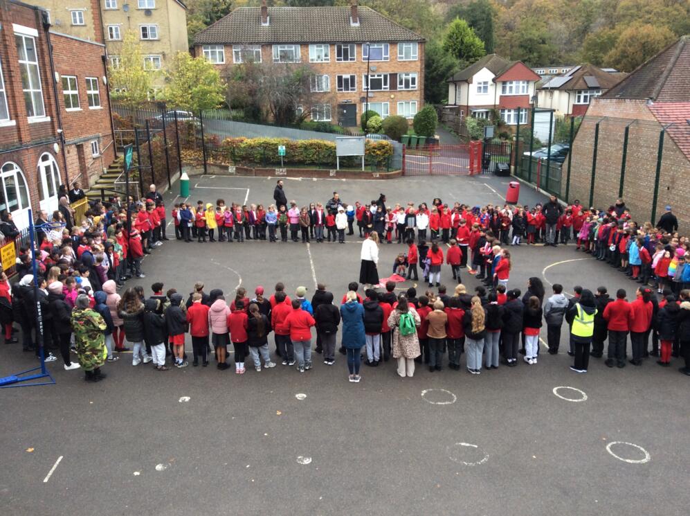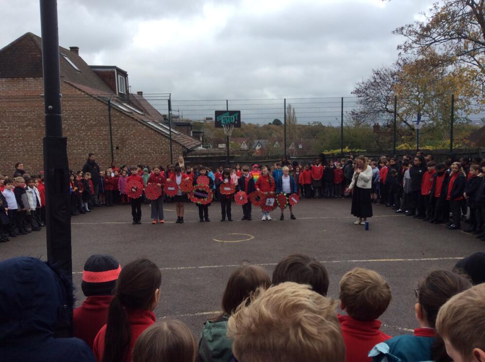 After the assembly, we made our way down to the lower playground. The House Captains shared two poems, and every class laid a poppy wreath that the children had created themselves. Each poppy contained a written message to those who have fallen in war, expressing gratitude for their sacrifice and hope for the future. We sang the song ‘Remember’ by Emily Barden, in memory of the sacrifices made for us.Please see our video of this below. We then observed the two-minute silence and then listened quietly to ‘The Last Post’. The children were reflective as they thought about the lives given in past conflicts and those still serving in conflicts today.