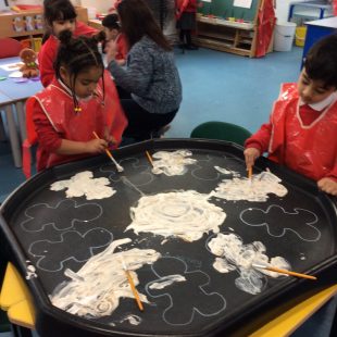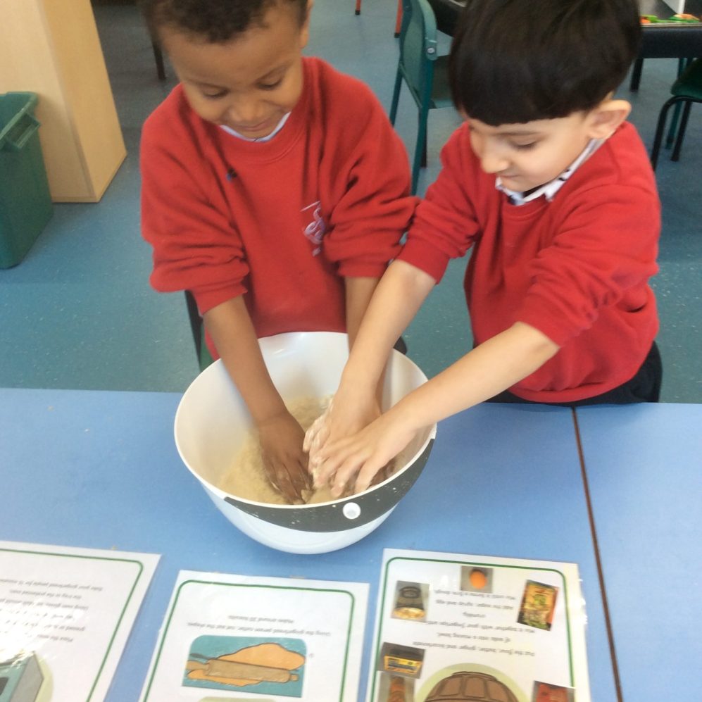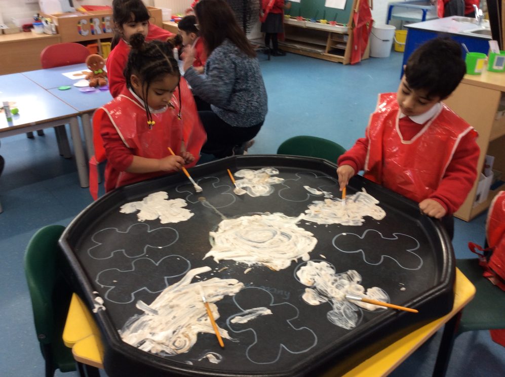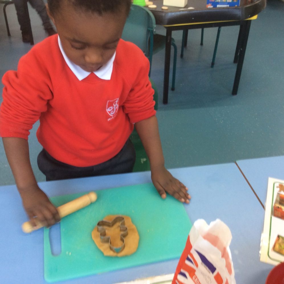 It has been a very exciting first two weeks of the Spring term in Gold class. We started our new theme of Traditional Tales with the story of ‘The Gingerbread Man’.  The children have been doing a variety of activities to help them learn the story and we were very pleased to see them retelling the events in their play. The children particularly enjoyed baking their own gingerbread man biscuits, carefully observing how the ingredients changed when they were mixed to form a dough and then using the cutter to shape their biscuits ready for baking in the oven. It was lovely to see their proud faces when they finally held their own gingerbread man biscuit!