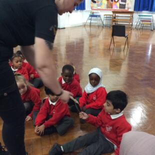 We met Osas, a Southern White-faced Owl, who had two feathers that looked like pointed ears, but we learned that an owl’s ears are actually positioned at different angles on their heads! Bella, an American Kestrel, had beautifully patterned feathers. She made Ms Montoya jump when she tried to fly off her carer’s arm! To the children’s surprise, Lansell, a Tawny Owl, looked just like the mummy owl in the story ‘Owl Babies!’ It was lovely to see the birds up close and to listen to them hooting. When Lansell flew over our heads, the children remained calm and brave. Did you know that owls fly really silently? We couldn’t hear their feathers make a sound.