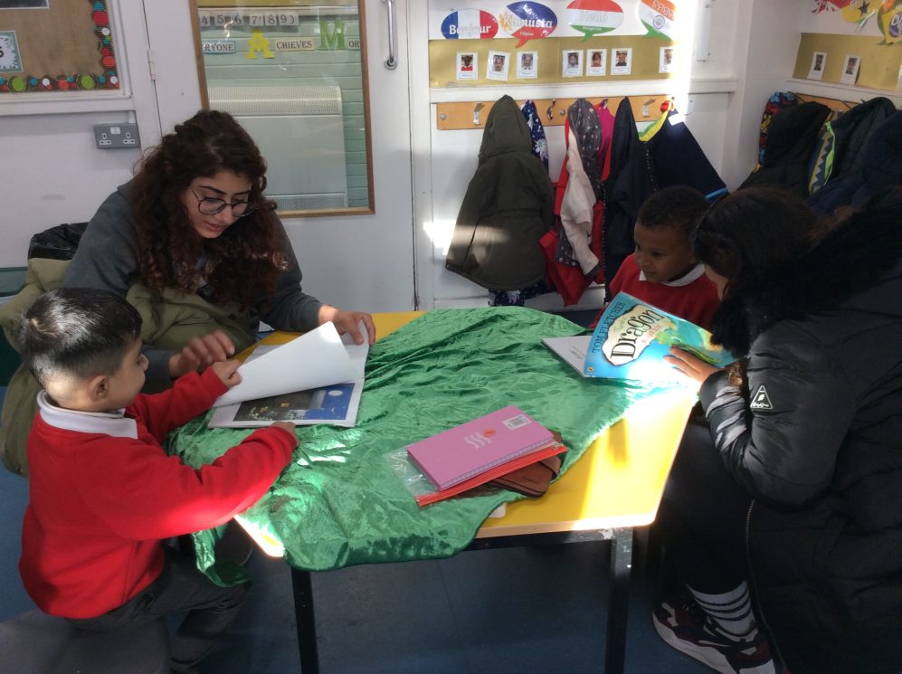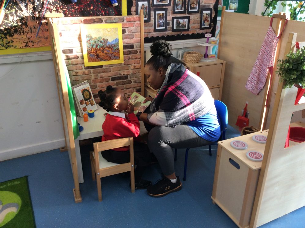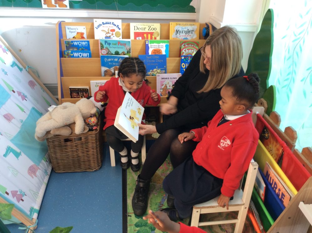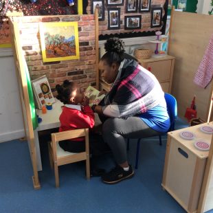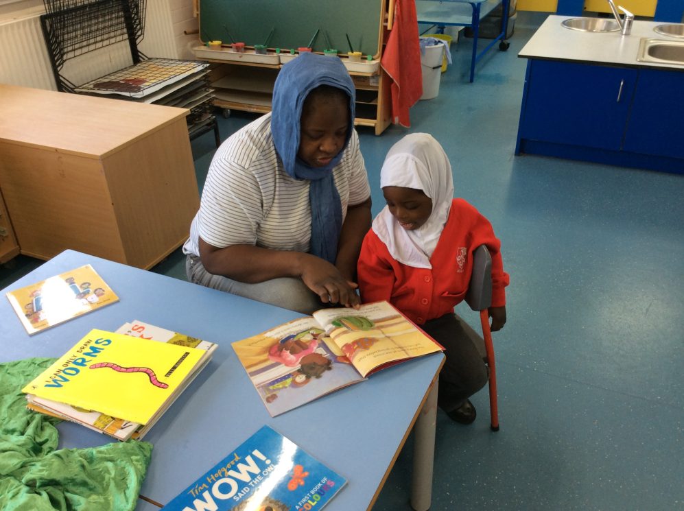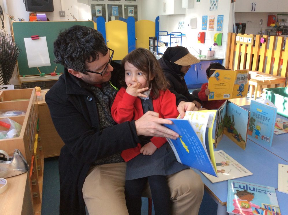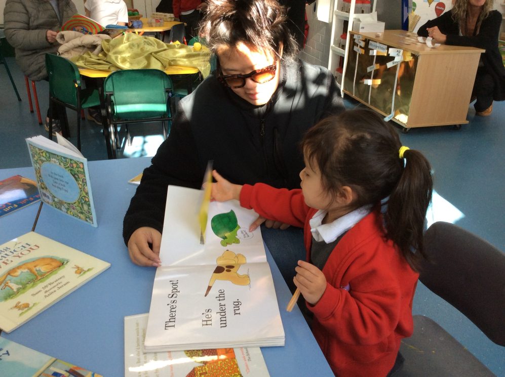 Today was our last ‘Share a story’ of the term. During these sessions parents can come in the class and read a story to their child. The children also enjoy showing their parents their morning routine in the nursery -hanging up their coats and bags, finding their names for self-registration and showing how they use the resources independently in the classroom.
