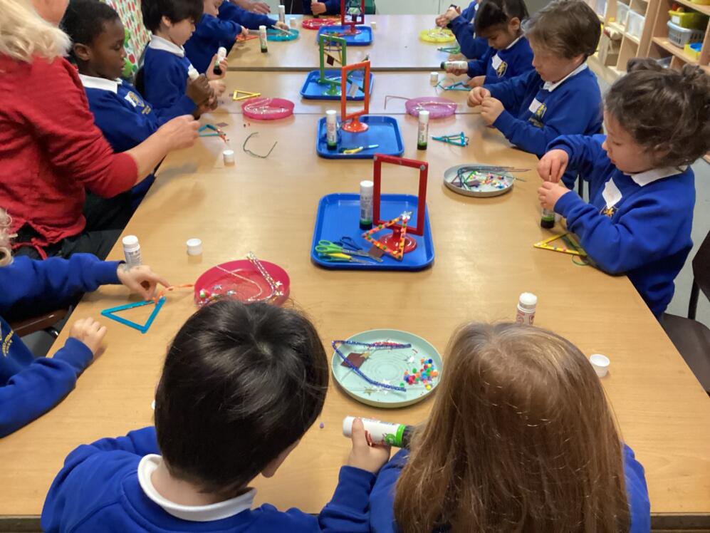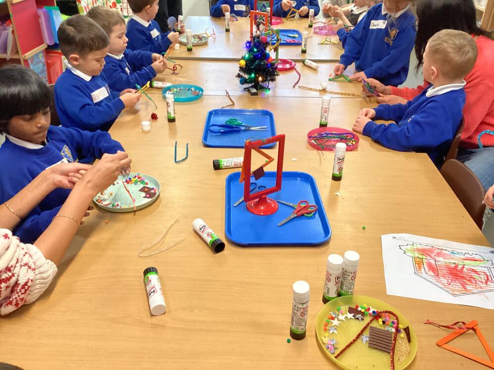 It’s that time of year again when sleigh bells can be heard just around the corner. In our Early Years, the children were participating in the joys of Christmas crafting. The children were put into mixed groups with children from Reception and Nursery. These groups moved from one activity to the next throughout the day, making six things in total.