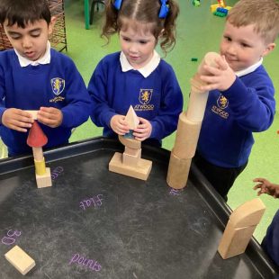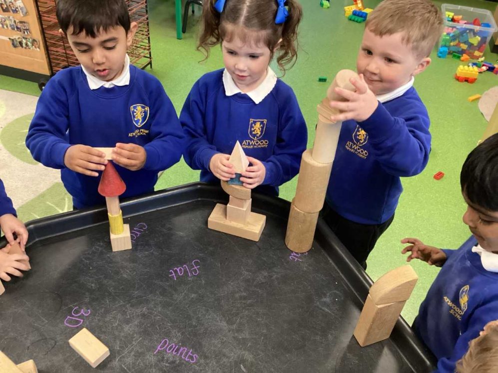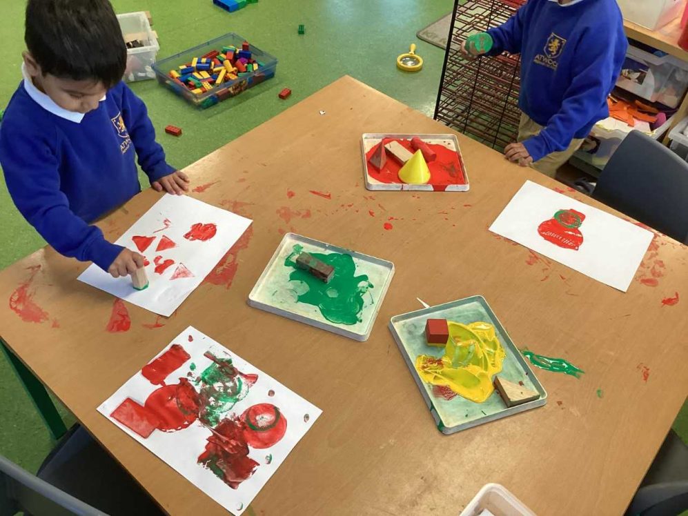 In maths, we recapped our learning about 2D shapes and have begun learning about the properties of 3D shapes. We have been using the keywords: faces, corners and edges to describe 3D shapes and sides and points to describe 2D shapes.