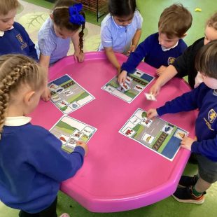 We have begun our new topic “The wheels on the bus”. This week we have been reading (and singing!) the story ‘We all go travelling by’ by Sheena Roberts. There is a sing along version on YouTube if you would like to sing it together with your child. The children have learnt all about different types of vehicles and different modes of transport. Each morning, they have shared how they got to school.