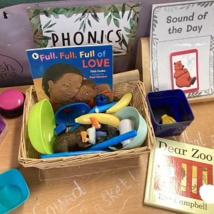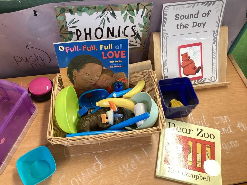 Our sound of the week is ‘b’. Our sound bucket has been overflowing with items the children have found that begin with this sound. in our phonics sessions, we have been oral blending words like bus, bird and bag and exploring words that rhyme like wheel and seal, horn and corn, chair and hair.