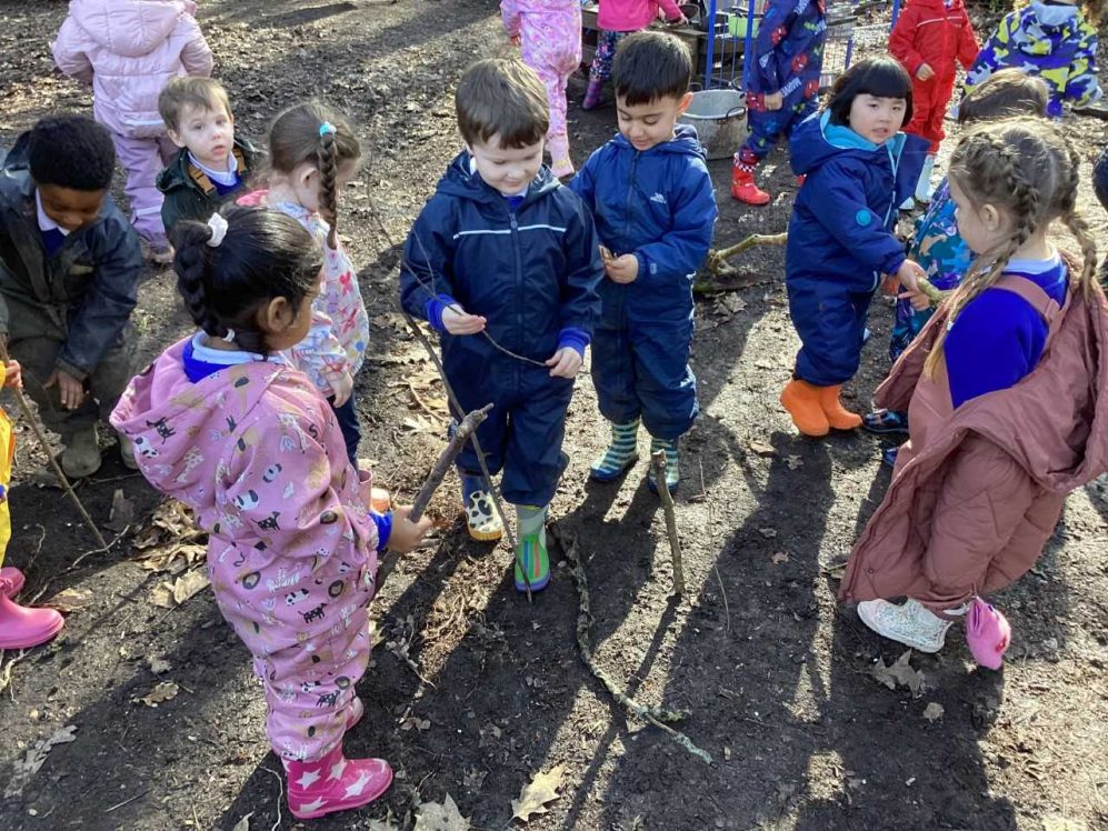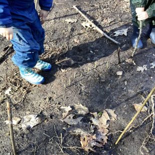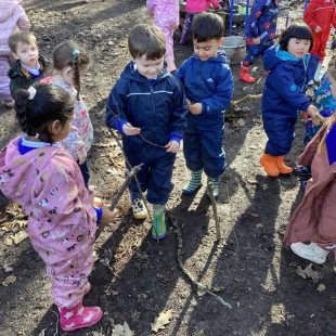 We were very excited to return back to forest school this week and what lovely weather we had too! At forest school, we read ‘Jack and the beanstalk’ and then went hunting for our own beanstalk sticks. We compared the length of our sticks then stuck them into the ground (in height order), making our very own beanstalks!