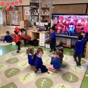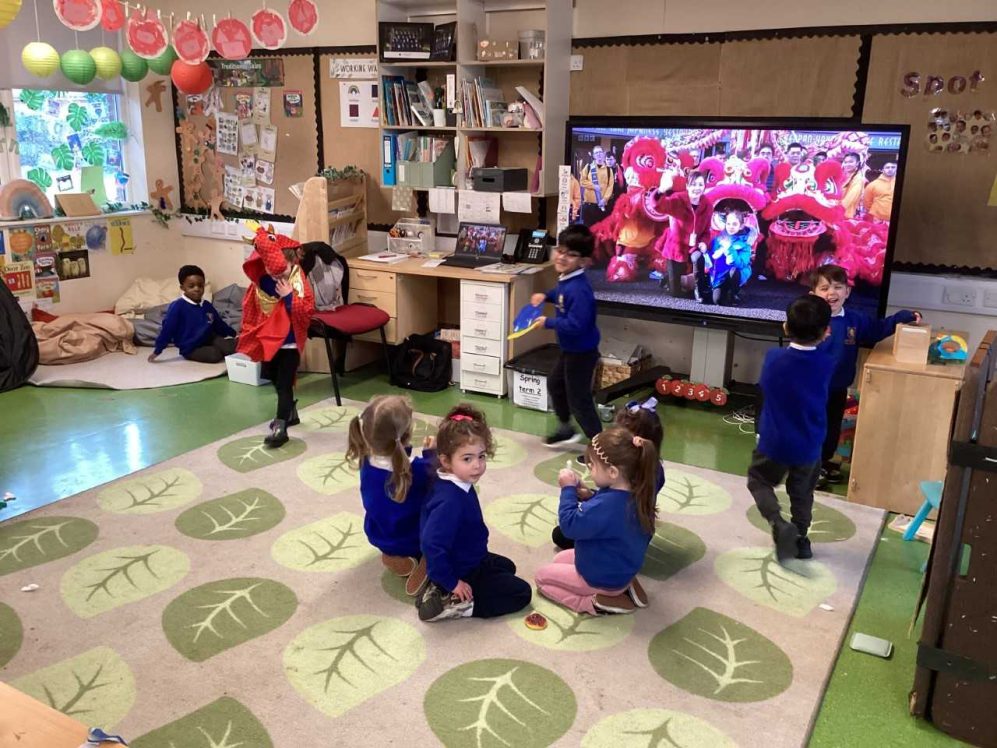 Welcome back! We hope everyone had a lovely half term. This week in nursery, we have been learning about the Lunar New Year. We read the story of the 12 animals of the zodiac and watched a video of how people celebrate. The children loved the dragon and lions and decided to make their own. In the classroom, the children also role played their own festival parade and followed the dragon around using plates and tomatoes for drums!