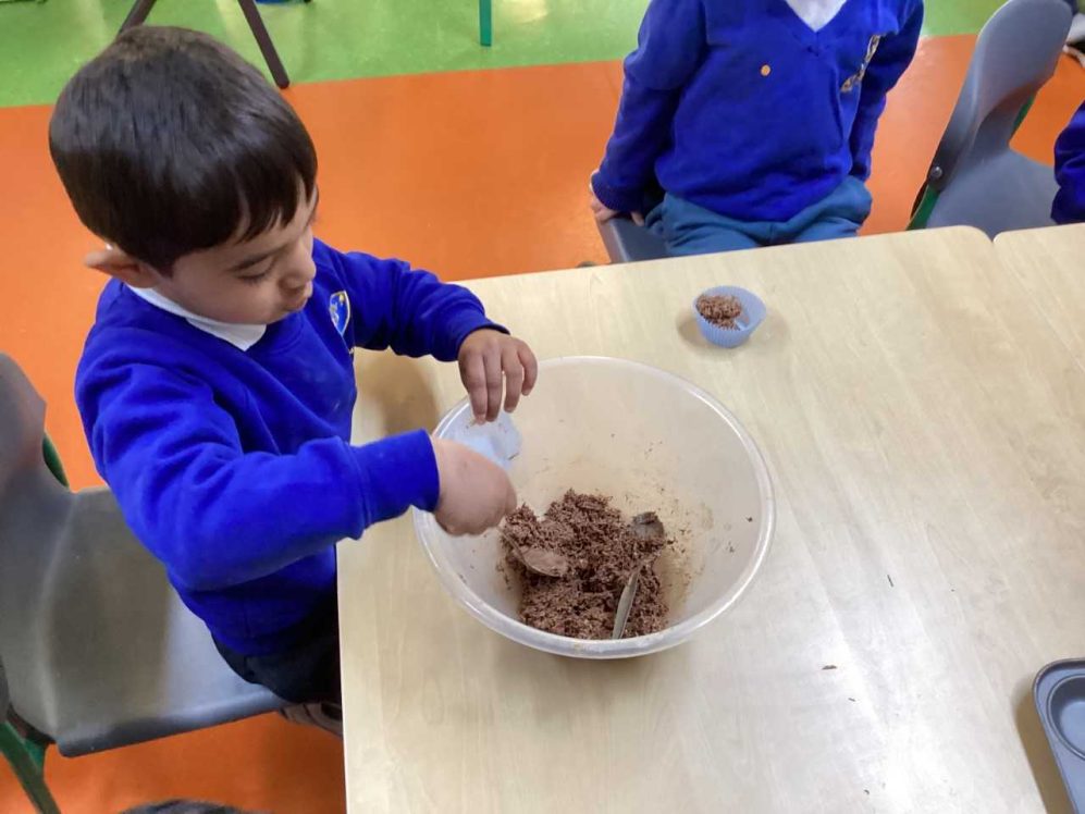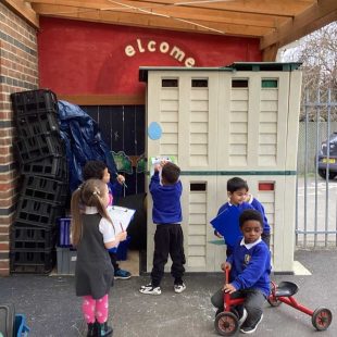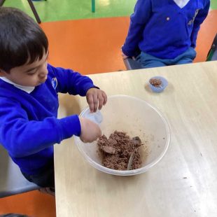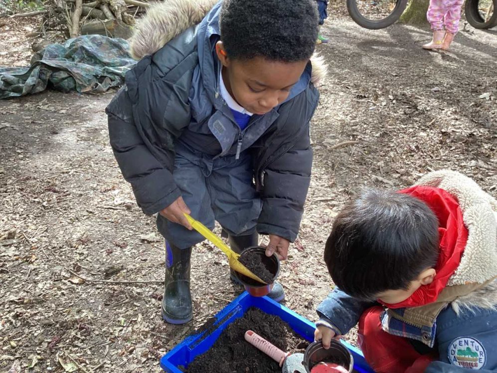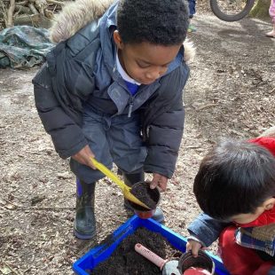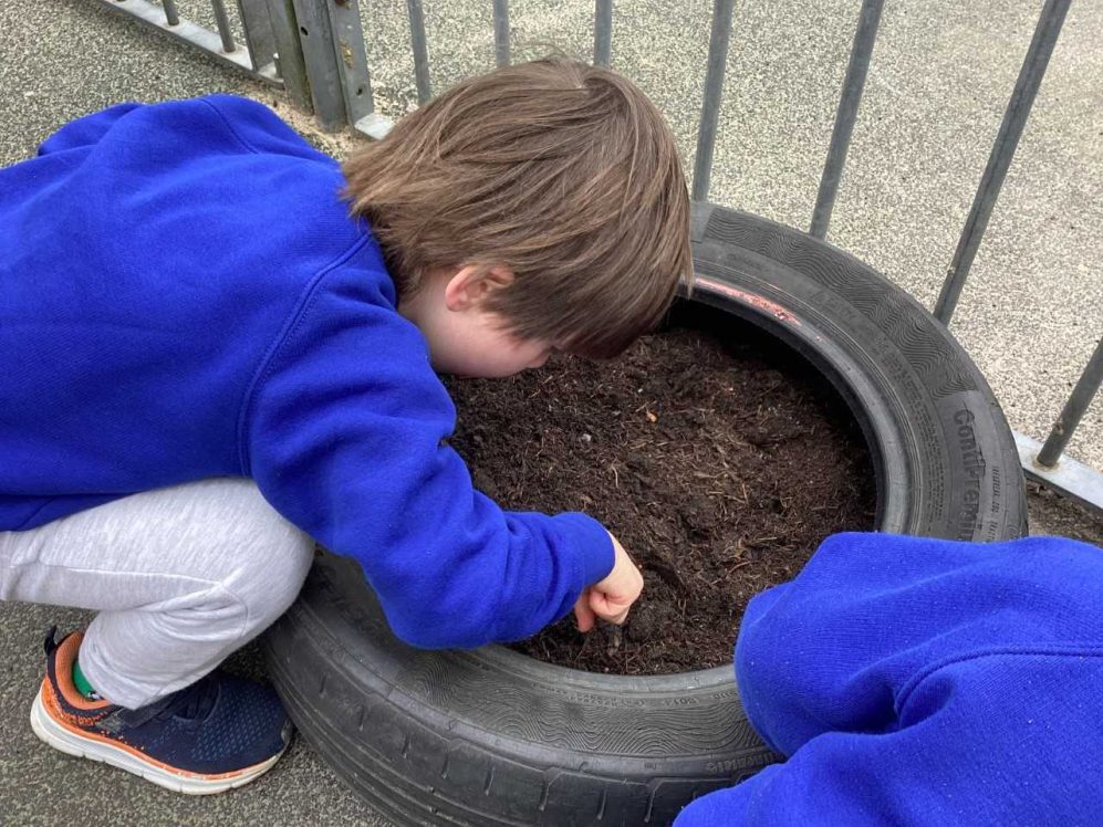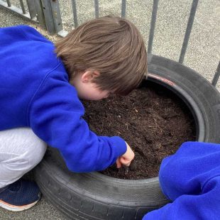 In forest school, we read ‘Sam plants a sunflower’ and then planted our own sunflower seeds to take home. We also planted some in our outside area and we are very excited to watch them grow!