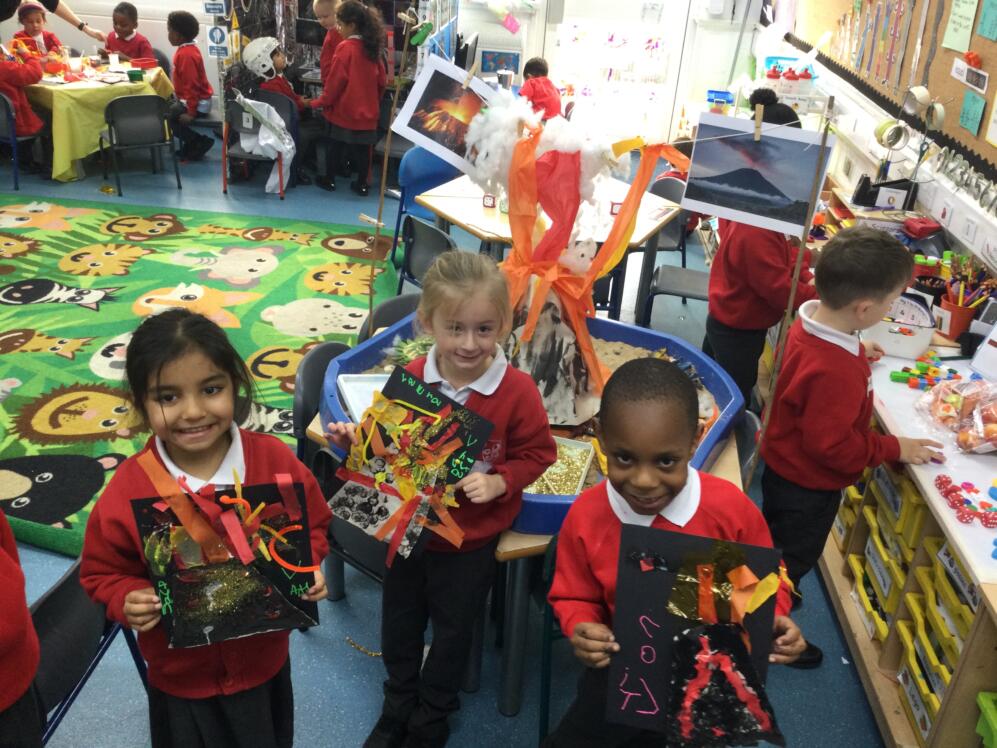 Yellow Class have had a wonderful half term packed with curiosity, creativity, and lots of fun! We have been busy learning all of our phonics sounds and tricky words, and the children have worked so hard to become confident readers. One of our favourite sounds has been ‘v’ for volcano! We enjoyed it so much that we explored volcanoes in books, researched where they can be found around the world, and linked this learning to our new topic, “Our Amazing World.”