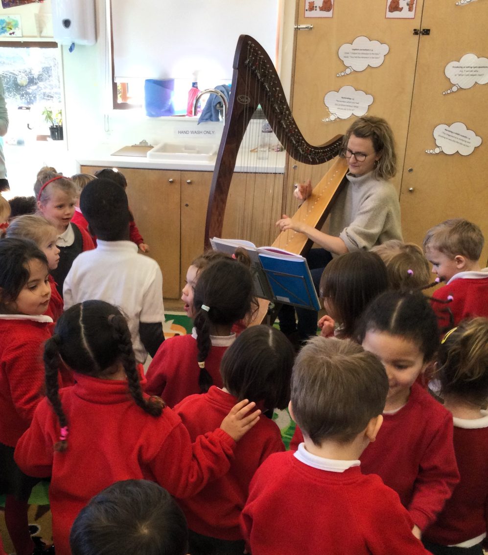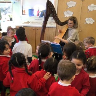 We were incredibly fortunate on Wednesday in Little Cypress as Bobby’s mummy came in to play her harp to us all in Rainbows and Nursery.