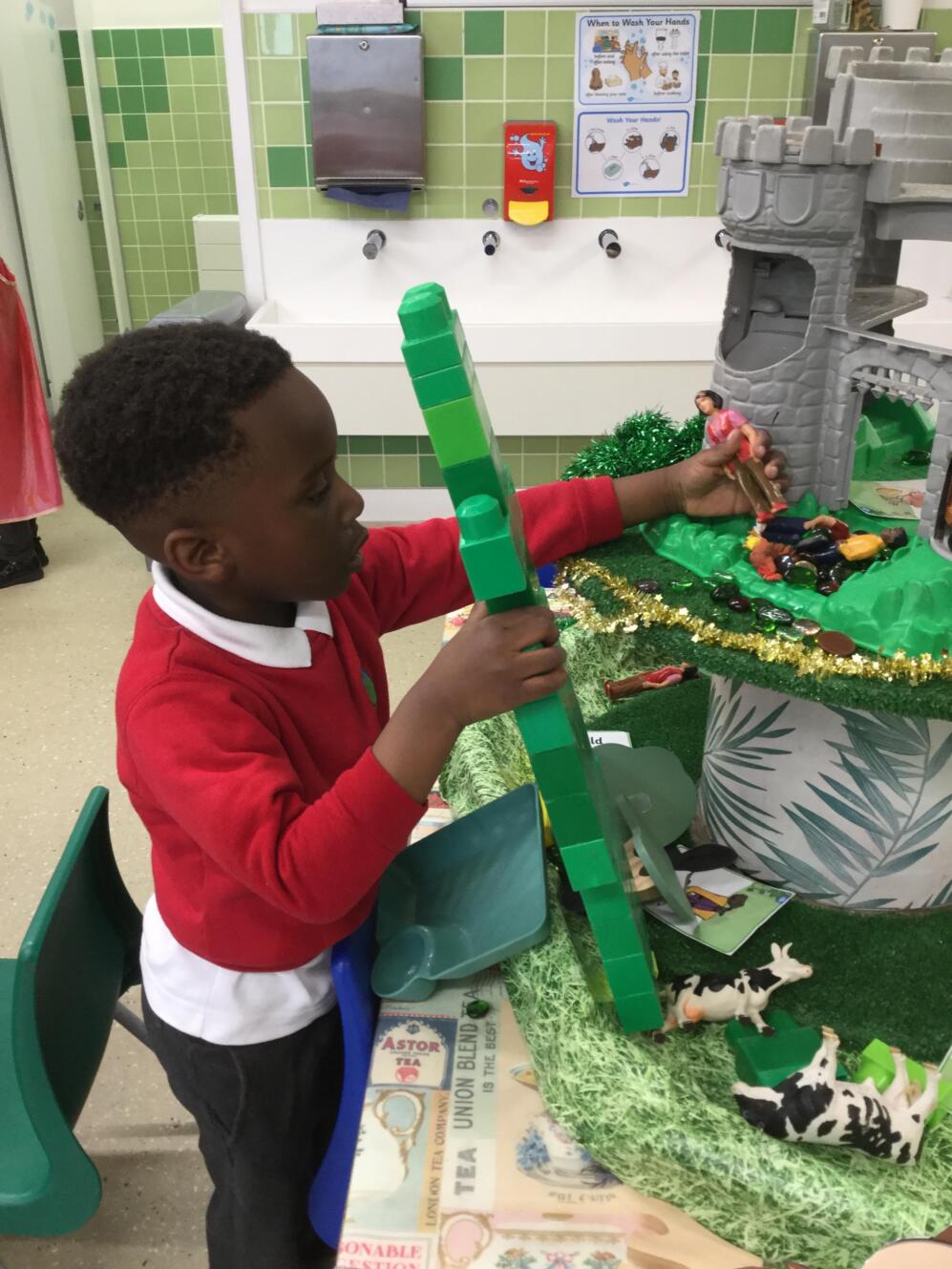 What a fabulous two weeks we have had back at school in Little Cypress! We have got straight back in to our routines and have loved listening to the story: ‘Jack and the Beanstalk’ and joining in the repeated refrains of the Giant. We have been hearing lots of: “Fi, fi, fo, fum…” echoing around Nursery and Rainbows, with great enthusiasm! We have listened to different versions of the story and compared some of the differences as well as the similarities. We were very perceptive in noticing which versions included golden harps and golden egg-laying hens!