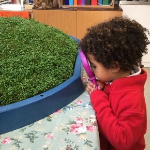 We were real detectives, using our magnifying glasses to check on the ever-growing mountain! We also watched a time lapse of cress growing and were amazed at seeing it grow in speeded up time.