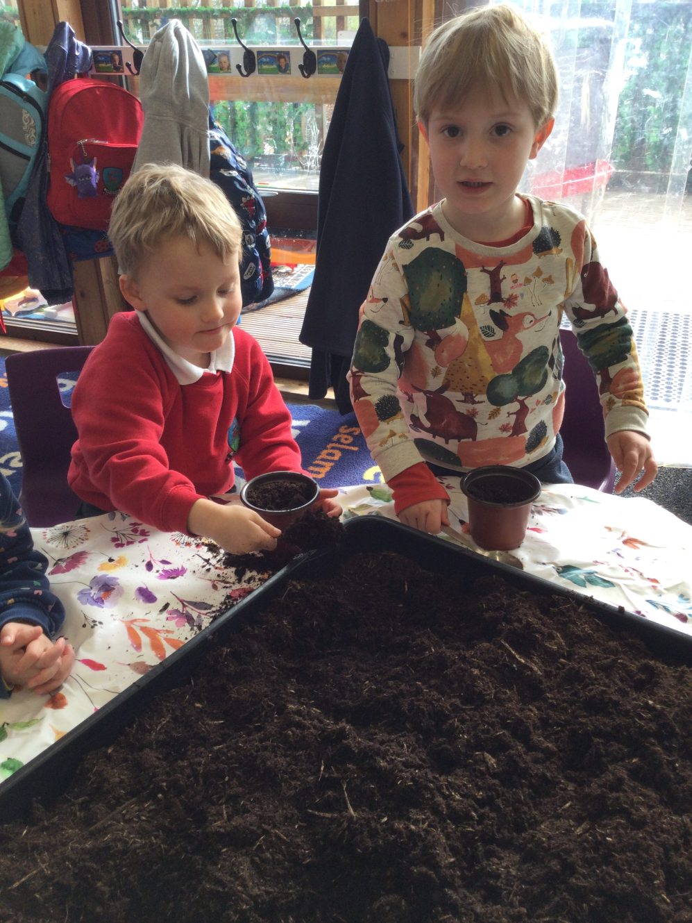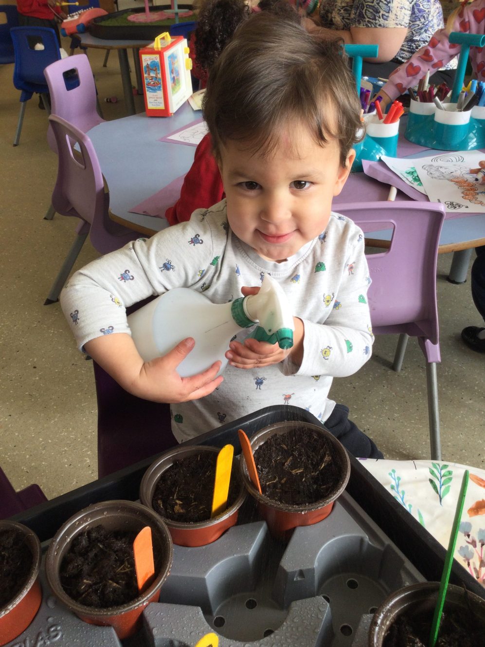 We also each planted a broad bean in soil and watered them. We have been reading lots of versions of ‘Jack and the Beanstalk’ and are closely observing our plants to see when they begin to grow! I wonder if any might grow as tall as the beanstalk in the story?