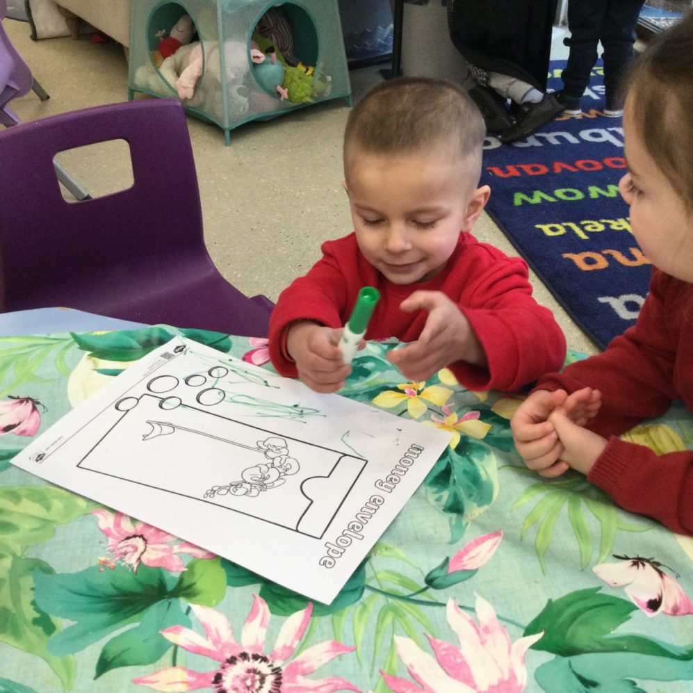 Nursery children have been focusing intently on doing some wonderful pictures of their own choosing and adding their own emergent writing to annotate them. We are noticing how they are increasingly adding detail to their work and explaining carefully what they have drawn and written; differentiating between the two. We have a class full of book worms and both storytimes and keyworker reading times are always a firm favourite!
