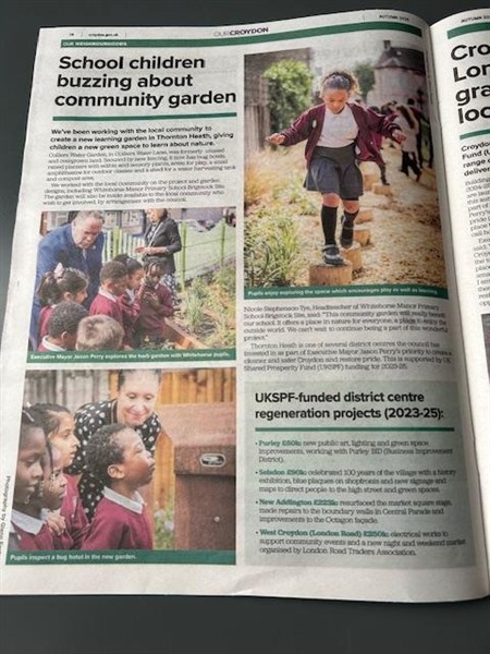 It was lovely to see the children at our Brigstock Site Annex making front page news this week! The children have been working alongside local community groups and the Executive Mayor to create a community garden. The garden on Colliers Water Lane features bug hotels, raised planters, edible and sensory plants, areas for play and a small amphitheatre for outdoor classes. The children are all very excited about using their new community space.