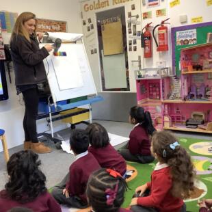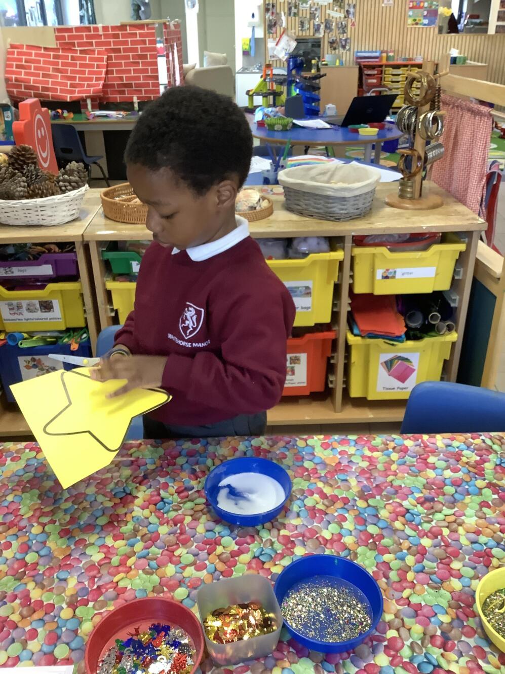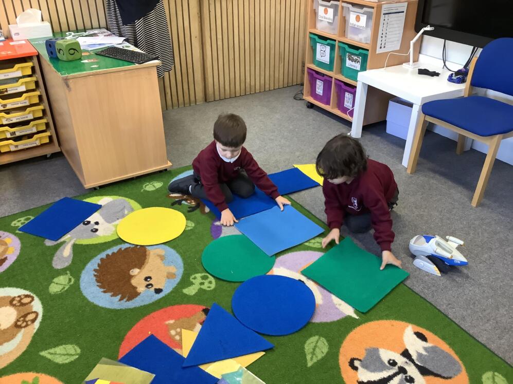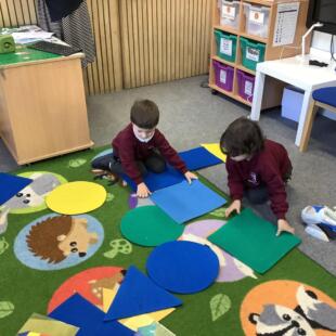 In maths we have continued with our focus on shapes and have been discussing the properties of rectangles. The children have been using the carpet tiles to make models of trains, fish, houses and lots of other lovely creations.