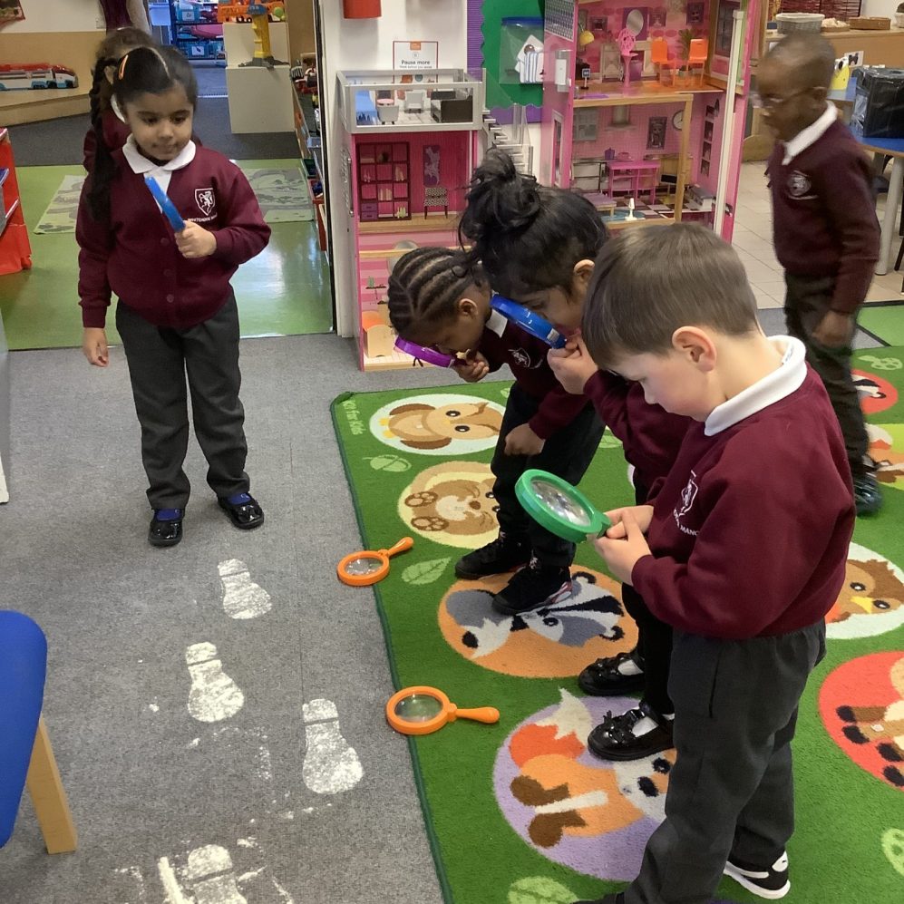 It was so lovely to see all the children return from the Christmas break, eager and ready to learn. We started the week recapping our phonics journey so far and introduced the new sound ‘m.’ The children have been busy finding things around the nursery that start with that sound and adding them to our phonics box, unfortunately Mrs Moore would not fit in there! We have also started our new topic of traditional tales, beginning with the story ‘The Gingerbread Man.’ The children turned into detectives on Tuesday when they arrived at nursery and found some floury footprints and had to guess who could have made them, there were some interesting suggestions such as Santa and Miss Roberts! After we read the story book, they used their investigative skills to work out it was The Gingerbread Man! We have transformed our role play area into a castle and the children have been enjoying their royal feasts whilst pretending to be kings and queens!