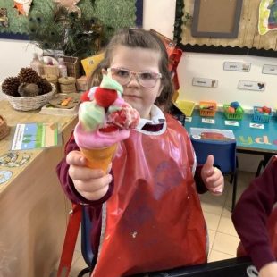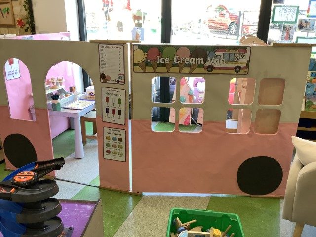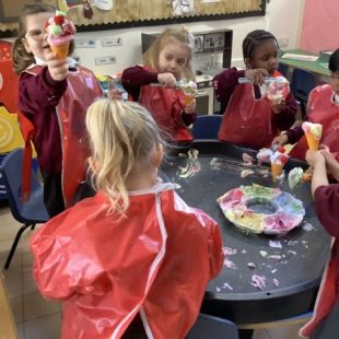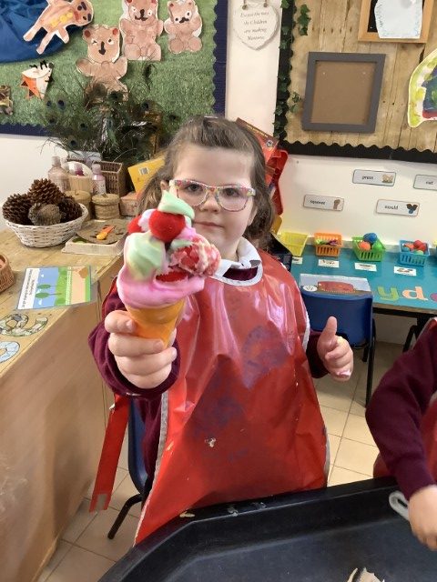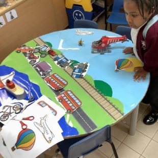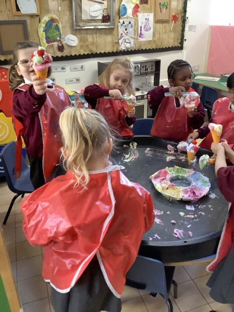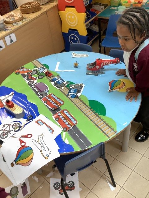 It was lovely to see all the children again and hear all about what they have been doing during the Easter break. They were greeted with an ice cream van as their new role play area which they have loved exploring! Our theme this term is transport and we have been reading the book ‘We All Go Travelling By’ by Sheena Roberts. We have also listened to the song version and have been making up our own actions for all the different types of vehicles. In maths we have introduced 3d shapes. The children have been exploring building with them and have been problem solving as to why a sphere won’t balance on a cone!