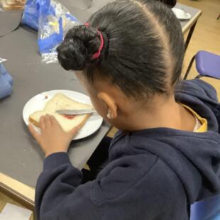 After their exploration, the children settled down for a delicious picnic which consisted of jam sandwiches and space-themed biscuits.  All prepared by the space astronauts (the children)!