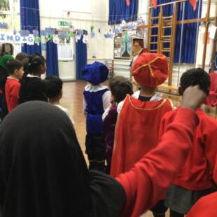 As the party was reaching it peak, the court musician (Mr Smith) sounded a trumpet blast and all heads turned. Enter Henry VIII himself; stern, dramatic and very much larger than life. Thankfully, no child was beheaded. His majesty was clearly feeling gracious as he allowed the children to ask all their burning questions which they have had since the start of the term.