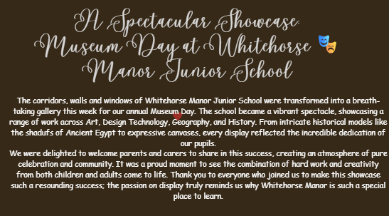 A Spectacular Showcase: Museum Day at Whitehorse Manor Junior School🎭
