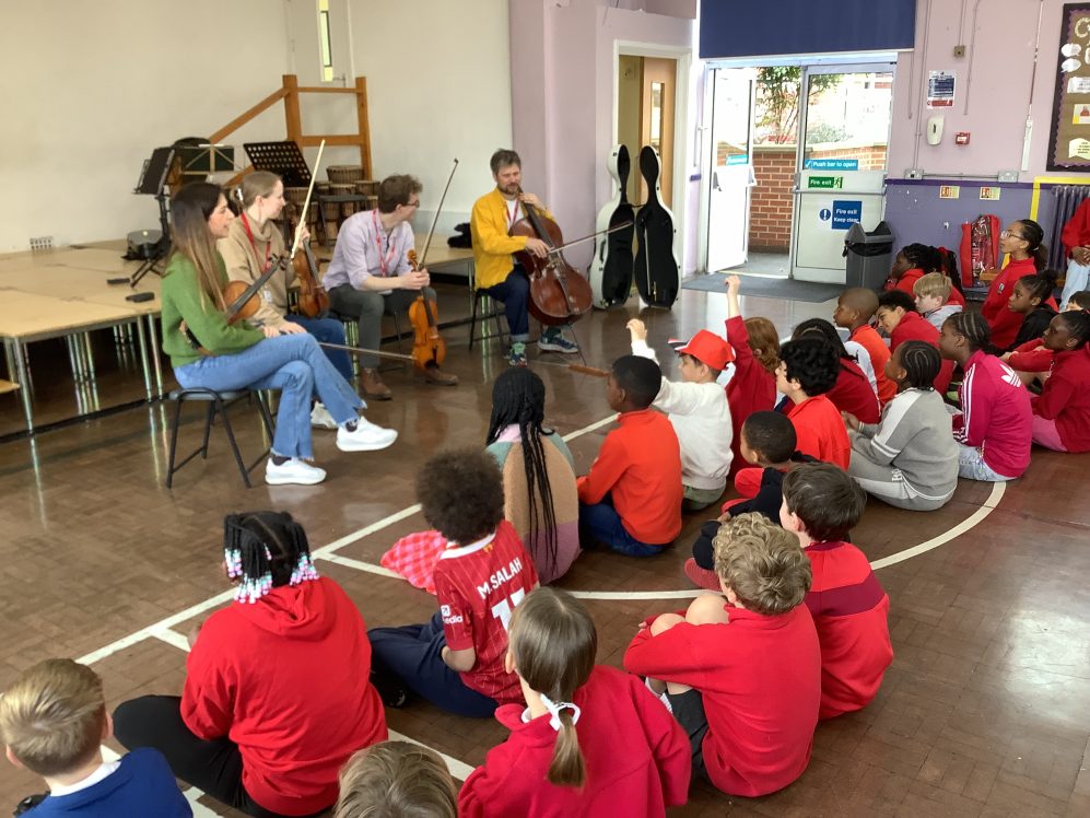 This morning, at the Upper School, we were delighted to welcome the London Mozart Players, who led a truly inspiring and memorable assembly. They introduced the children to different types of music, explored how music can make us feel, and demonstrated a range of musical techniques, all while giving us the special opportunity to experience live classical music; what a treat – it was exceptional! They also led workshops with our Year 5 children, teaching them routines to support classroom transitions using their bodies as percussive instruments, and guiding them as they composed their own piece of music together as a class. Many thanks to the London Mozart Players and to Miss Barker for making this fantastic experience possible; if only every Friday could start like that!