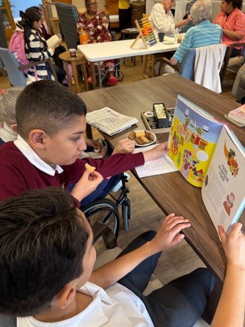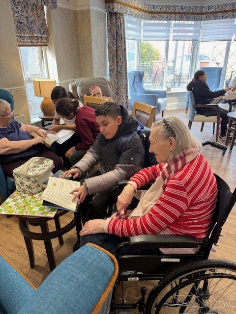 Since the start of the year, our UKS2 students have been bridging the generation gap every Monday morning. Armed with their favorite titles from the school’s Reading Spine, pupils have been visiting Clarendon Care Home to share stories and conversation with the residents.
